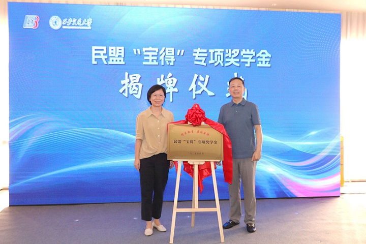 錢晴與奚龍為民盟“寶得”專項(xiàng)獎學(xué)金揭牌,突出項(xiàng)目在科研創(chuàng)新、人才培養(yǎng)與社會責(zé)任的多維價(jià)值。